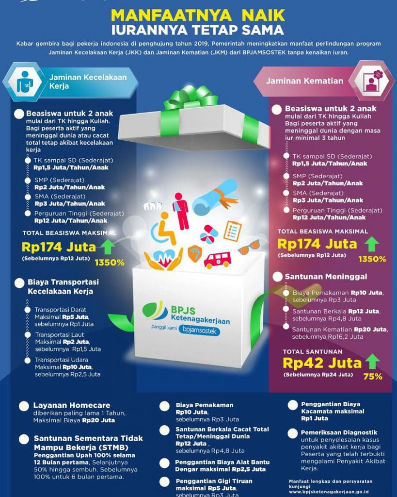Harapannya dengan peningkatan manfaat kepersertaan agar perusahaan yang belum mendaftarkan bisa mempercepat pendaftaran. “Karena manfaatnya luar biasa,” ujarnya.