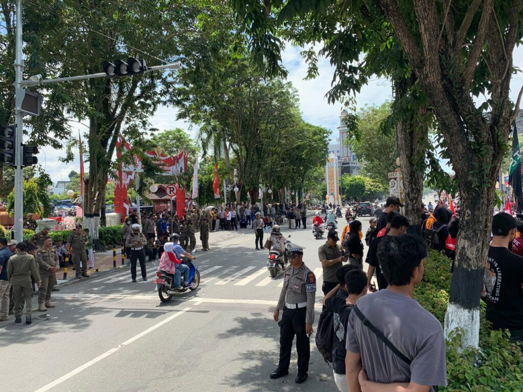 Aksi dimulai pukul 11.00 Wita. Mereka langsung menutup satu ruas jalan Jenderal Sudirman arah lapangan Merdeka. Aksi tersebut sempat membuat ruas jalan Jenderal Sudirman ditutup dua arah. Namun pukul 11.30 Wita massa membubarkan diri untuk salat Jumat. Rencananya aksi mahasiswa akan kembali dilakukan setelah salat jumat.