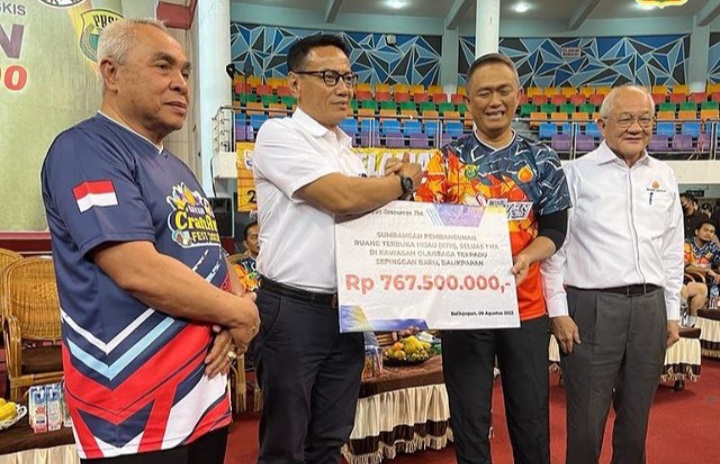 Bantuan yang diberikan oleh PT Bayan Resources tbk berupa dana pembangunan sebesar Rp767.500.000 dan diterima langsung Kepala DLH Balikpapan Sudirman Djayaleksana saat pembukaan kejuaraan Bayan 300 tahun 2023 di BSCC Dome Balikpapan, Rabu (9/8/2023).
