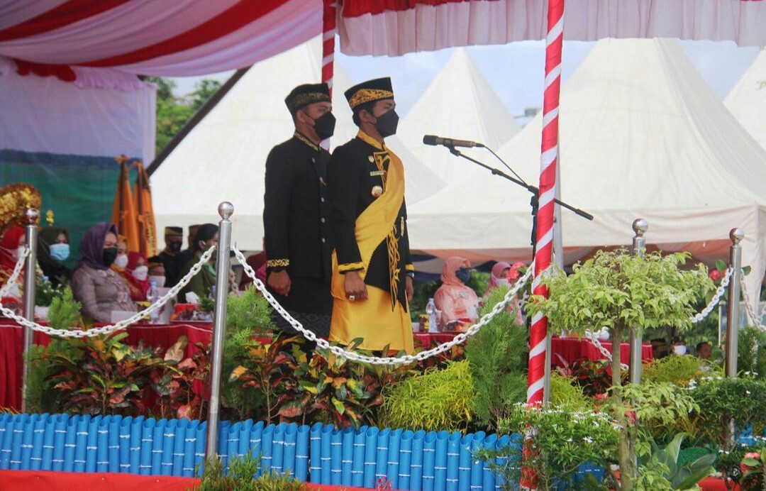 Namun pada upacara HUT Kabupaten kali ini, tamu dan undangan yang hadir terbatas dengan menerapkan protokol kesehatan (prokes) secara ketat. Upacara dipimpin langsung Bupati Abdul Gafur Mas’ud (AGM) .