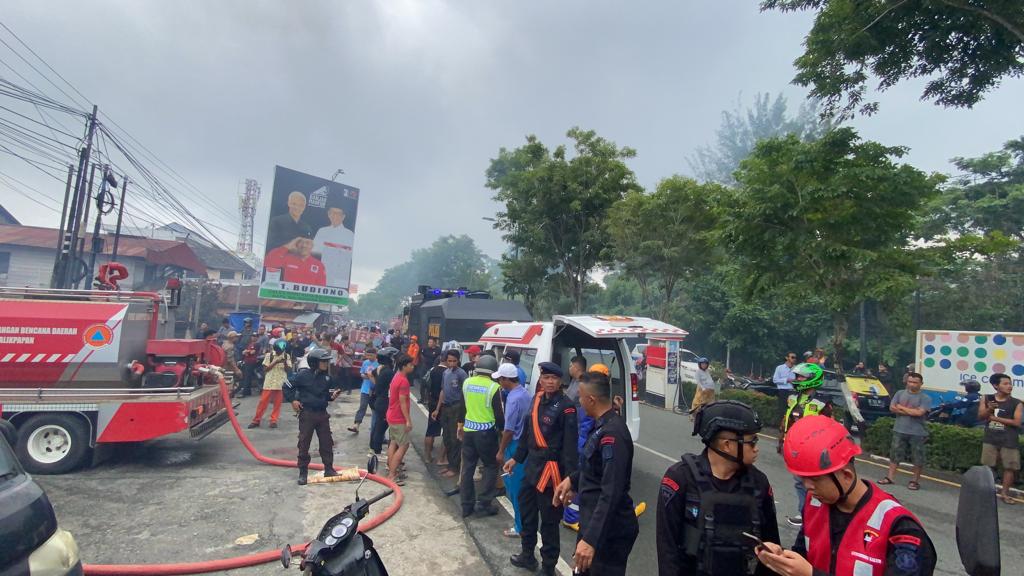 Belasan kendaraan pemadam kebakaran dikerahkan, termasuk mobil ambulans diantaranya dari Unit Pos Pemadam, kepolisian hingga relawan. Termasuk bantuan hydran PDAM.