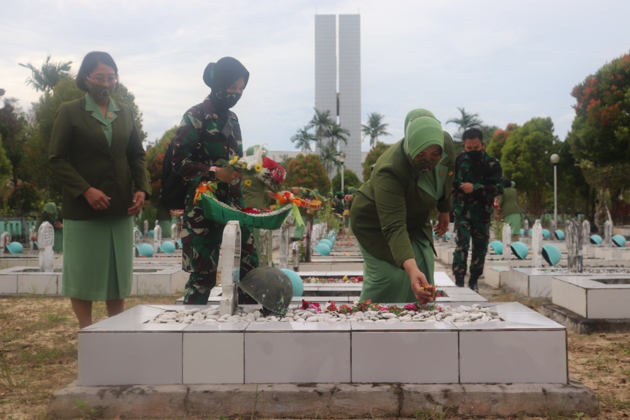 BALIKPAPAN, Inibalikpapan.com – Dalam rangka memperingati Hari Ulang Tahun (HUT) Persit Kartika Chandra Kirana (KCK) ke-75 tahun 2021, Persit KCK PD VI/Mulawarman melaksanakan ziarah rombongan di Taman Makam Pahlawan (TMP) Dharma Agung Balikpapan, Kamis (1/4/2021).
