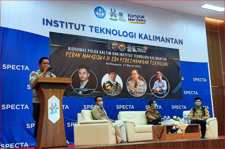 Balikpapan, Inibalikpapan.com,– Bidang Humas Kepolisian Daerah (Polda) Kaltim bersama Institut Teknologi Kalimantan (ITK) kembali menggelar sosialisasi dengan tema: Peran Mahasiswa di Era Perkembangan Teknolgi yang diadakan di Auditorium Lab terpadu ITK KM 15 Jl. Soekarno-Hatta, Karang Joang, Balikpapan Utara Kamis, 17 Maret 2022.