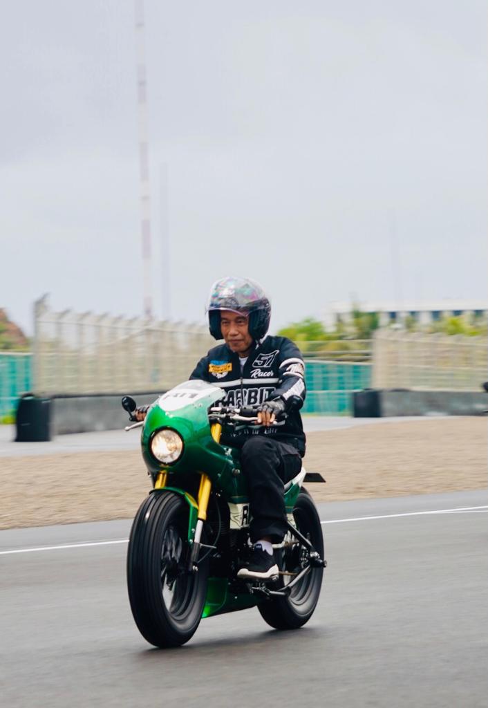 Presiden saat menjajal Sirkuit Mandalikan menggendari kendaraannya sendiri