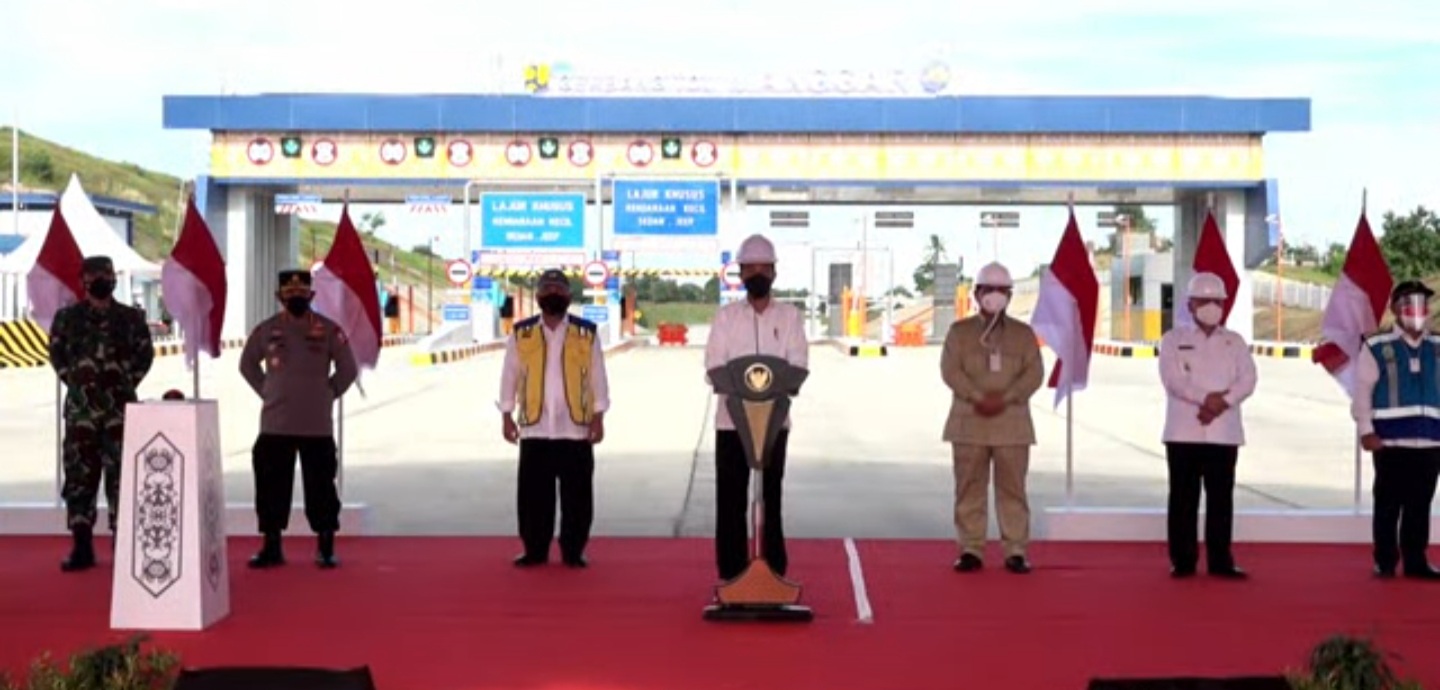 “Sore ini kita resmikan tol Balikpapan-Samarinda seluruhnya 97,3 kilometer telah tuntas dikerjakan. Ini momen bersejarah karena tol pertama di pulau Kalimantan,” ucap Presiden saat sambutan singkat peresmian tol Balikpapan seksi 1 dan 5 didampingi Menteri PUPR Basuki Hadimulyono, Menhan Prabowo, Gubernur Kaltim Isran Noor, Jasa Marga Persero.