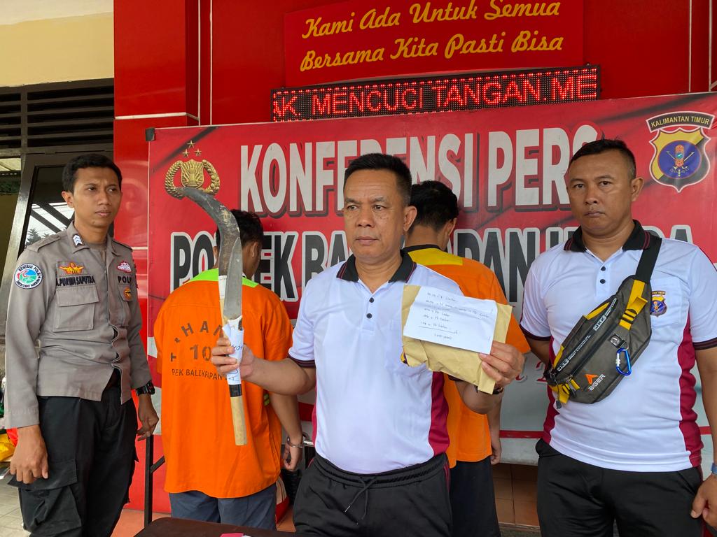 “Kejadiannya pada hari Rabu 18 Oktober 2023 jam 23.30. Tersangka masuk mengacungkan celurit dan pisau,” ujar Kapolsek Balikpapan Utara AKP Bitab Riyani, Minggu (29/10/2023).