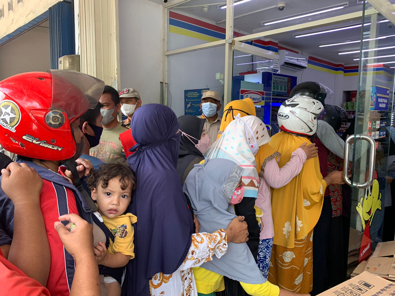 Antrian pembelian juga terlihat retail modern Markoni, Balikpapan Kota. Tampak antrian mengular sepanjang 20-30 meter.