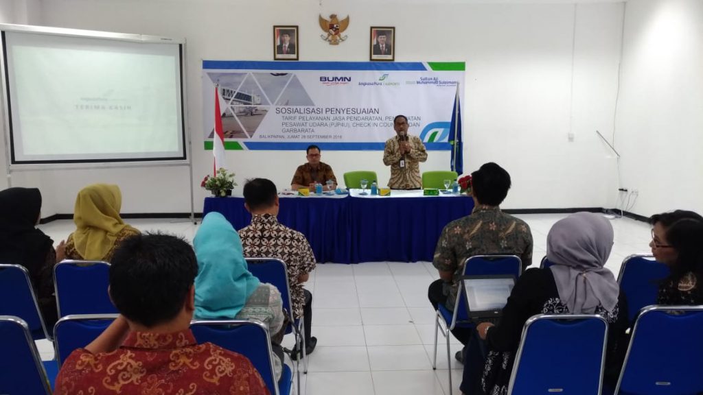 Sosialisasi penyesuaian tarif pelayanan jasa pendaratan, penempatan pesawat udara (PJP4U), check in counter dan garbarata diikuti oleh groundhandling, airlines. Penyampaian sosialisasi dilakukan oleh Iwan Sanusi Libere Sales Departement Head AP I Sepinggan Balikpapan, dan dihadiri Sulkan Vice President Aeronautikal bisnis AP I Pusat. Kegiatan sosialisasi serupa juga dilakukan di Surabaya, Bali dan daerah lain.
