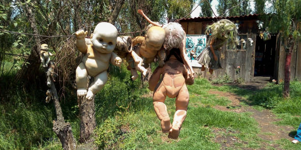 Pulau ini dipenuhi ribuan boneka tua, rusak, dan tanpa mata yang digantung di pepohonan. Legenda menyebutkan bahwa boneka-boneka itu dipasang oleh Don Julián Santana, penjaga pulau, untuk menenangkan arwah seorang gadis kecil yang tenggelam di kanal dekat sana. Hingga kini, banyak pengunjung mengaku mendengar boneka berbisik atau bergerak sendiri.