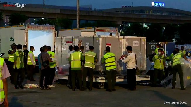 “Mulai akhir Februari pengiriman vaksin multilateral telah mulai dilakukan, dan pada hari ini Indonesia menerima pengiriman pertama vaksin AstraZeneca sebesar 1.113.600 vaksin jadi, dengan total berat 4,1 ton, yang terdiri dari 11.136 karton,” ujarnya