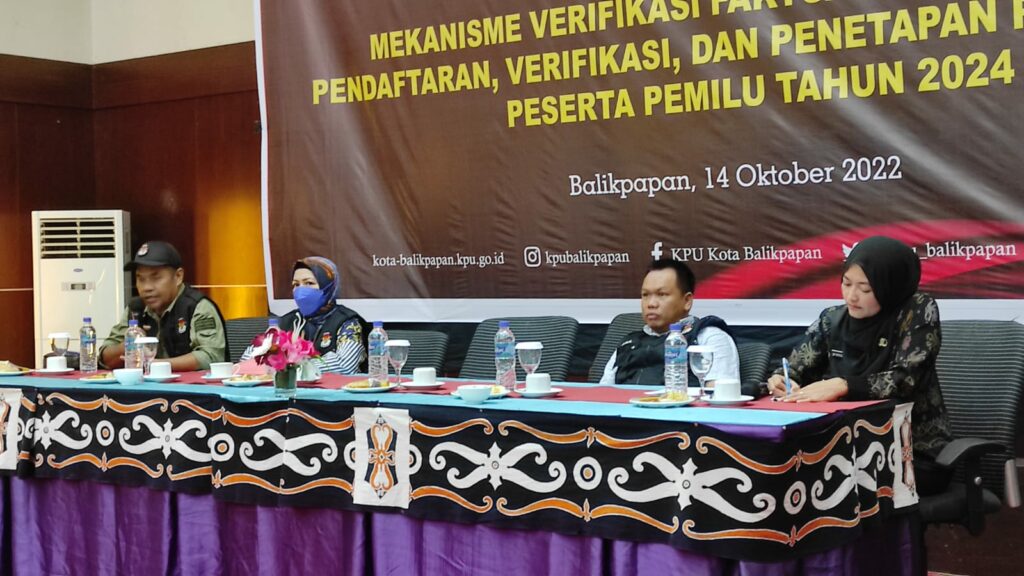 BALIKPAPAN,Inibalikpapan.com – Guna menyiapkan pelaksanaan pemilu serentak yang akan dilaksanakan pada 2025 mendatang, KPU Kota Balikpapan melaksanakan sosialisasi mekanisme verifikasi faktual dalam tahapan pendaftaran, verifikasi, dan penetapan partai politik peserta pemilu 2024, di Hotel Horison, Jumat (14/10/2022).