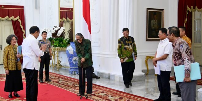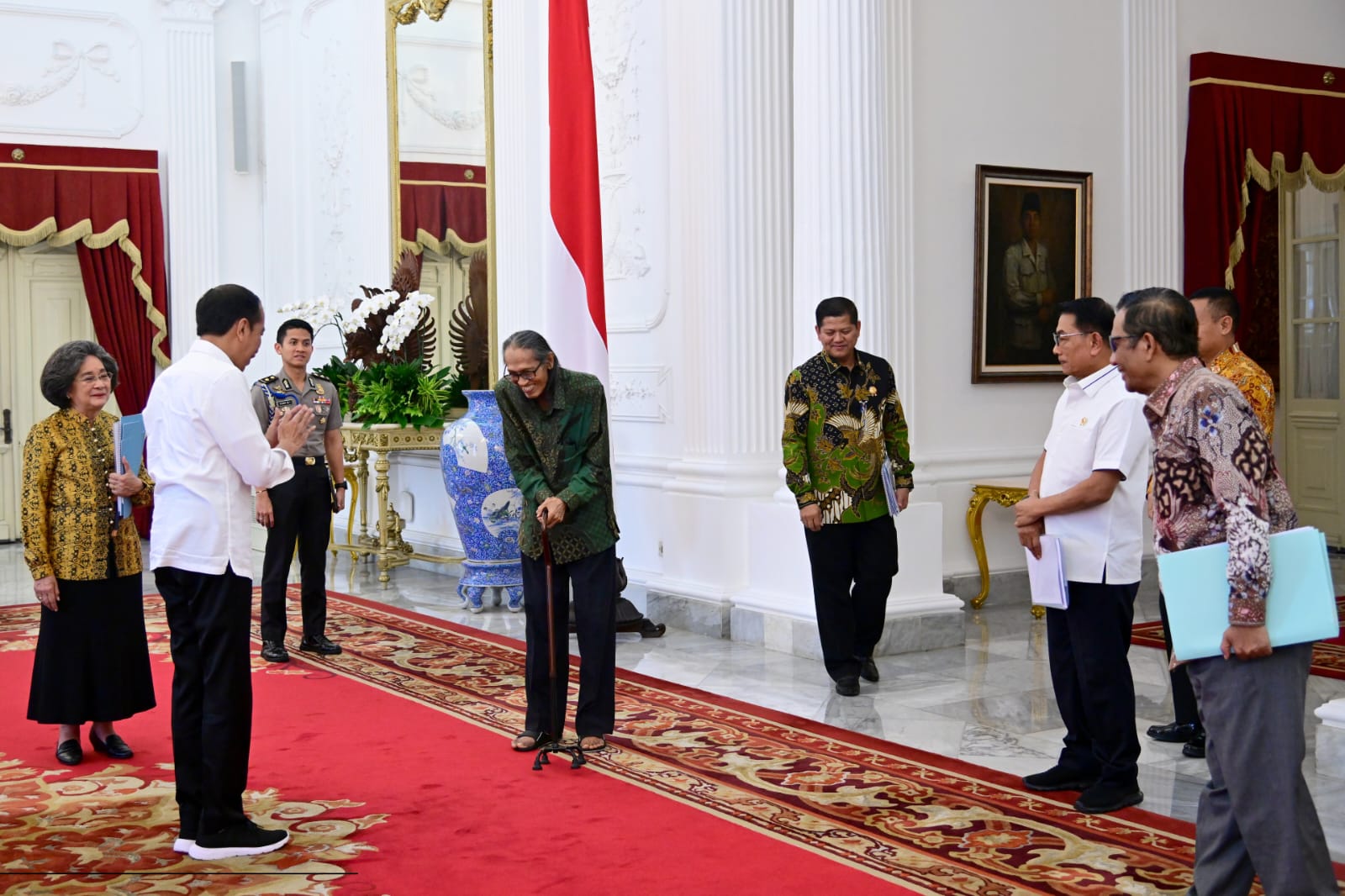 Pertemuan yang digear di Istana Merdeka Jakarta itu membahas persiapan penganugerahan gelar tanda jasa dan tanda kehormatan. Tampak juga Menteri Sekretaris Negara (Mensesneg) Pratikno