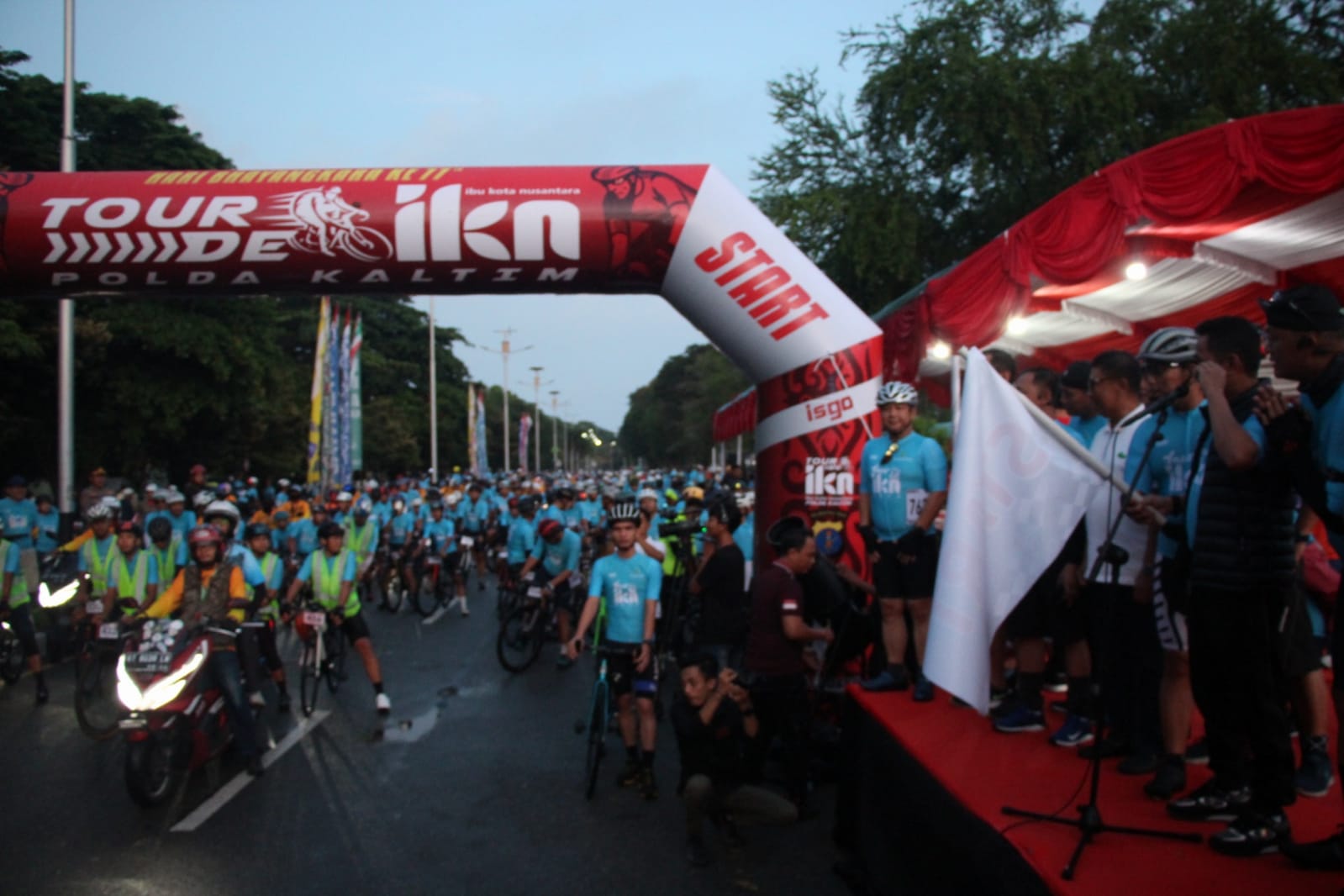 Wali Kota Balikpapan Rahmad Mas’ud didampingi Kapolda Kaltim Irjen Pol Imam Sugianto melepas start 2.000 peserta bersepeda ini, sekitar pukul 06.30 Wita.