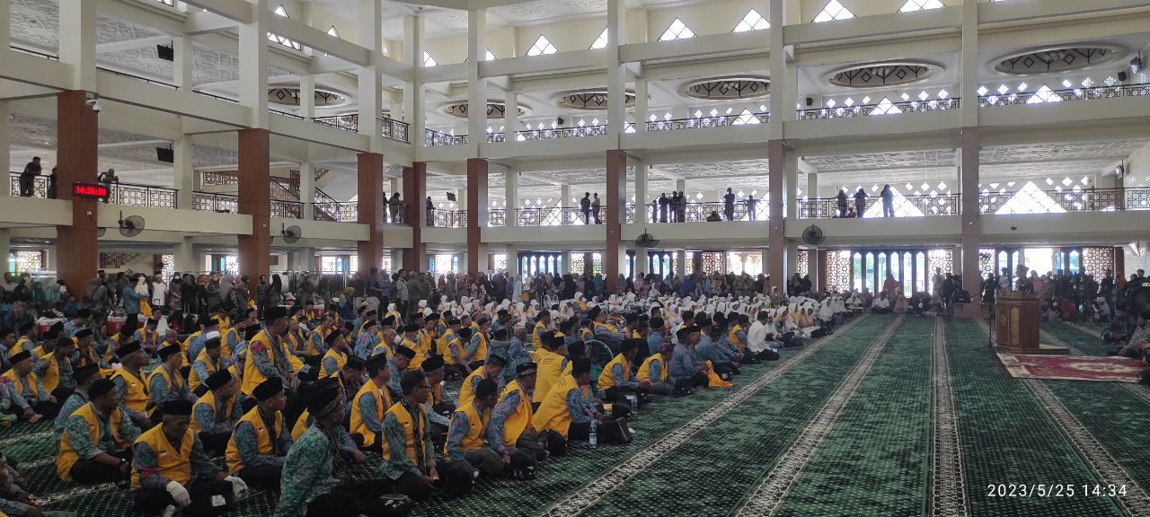 Lebih dari seribu orang baik dari keluarga calon haji maupun keluarga besar berkumpul di BIC terutama di halaman dalam masjid maupun di halaman masjid sejak pukul 13.00. Wita.