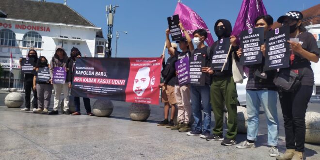 YOGYAKARTA, Inibalikpapan.com – Aliansi Jurnalis Independen (AJI) Yogyakarta menggelar aksi untuk memperingati 27 tahun kasus pembunuhan jurnalis Harian Bernas, Fuad Muhammad Syafruddin atau Udin.
