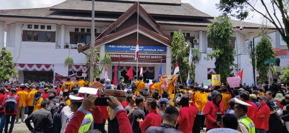 Sekitar 1000 Mahasiswa Demo Tutup Jalan Jenderal Sudirman depan Pemkot Balikpapan