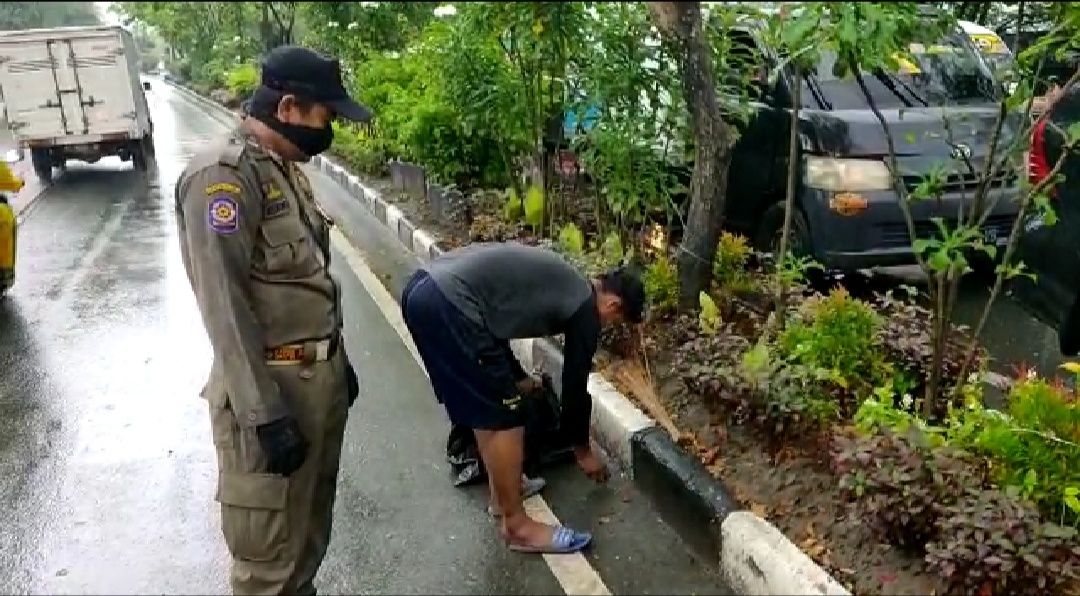 BALIKPAPAN, Inibalikpapan.com — Riko (30) warga Balikpapan Utara tidak menyangka dirinya harus hujan-hujan membersihkan sampah di jalan dan troator akibat tidak memakai masker.