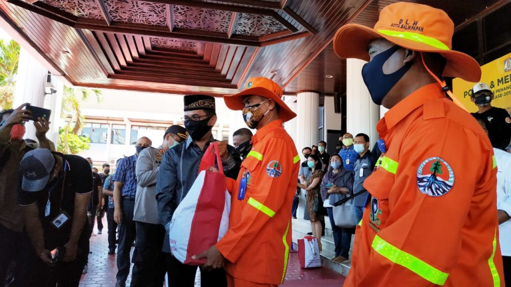 Secara simbolis bantuan sembako tersebut, masing-masing diberikan kepada Lembaga Veteran , pasukan kebersihan, petugas perawatan taman yang diserahkan Wali Kota Balikpapan Rizal Effendi dan Wakil Wali Kota Rahmad Mas’ud.