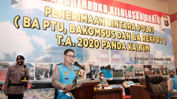 Balikpapan- Polda Kalimantan Timur menggelar sidang terbuka kelulusan akhir penerimaan Bintara Polri T.A.2020 di Gedung BSSC Dome Balikpapan, Jumat (13/11/2020).