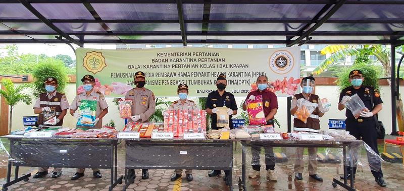 Pemusnahan tanaman ilegal dan daging olahan yang tak dilengkapi dokumen itu, disaksikan Perwakilan Polsek KP3 Bandara Sepinggan, Bea Cukai, Pos Indonesia, serta jasa pengiriman DHL dengan tetap mematuhi protokol kesehatan.