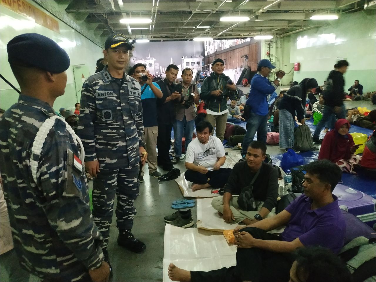 Sehingga lanjutnya, para penumpang harus menyesuaikan dengan prosedur yang ada di KRI Makassar. Karena sebelumnya dilakukan razia barang bawaan penumpang yang dilakukan petugas TNI AL maupun kepolisian saat akan menaiki kapal.