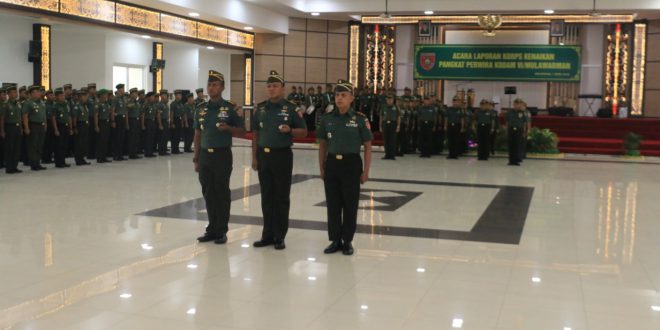 BALIKPAPAN, Inibalikpapan.com – Kasdam VI/Mulawarman Brigjen TNI Richard Tampubolon yang mewakili Pangdam VI/Mlw mengucapkan selamat kepada seluruh Prajurit dan PNS Kodam VI/Mulawarman yang memperoleh penghargaan dari negara berupa kenaikan pangkat satu tingkat lebih tinggi dari pangkat semula, pada acara Laporan Korps Kenaikan Pangkat Perwira Kodam VI/Mulawarman di aula Makodam VI/Mulawarman, Senin (1/4/2019).