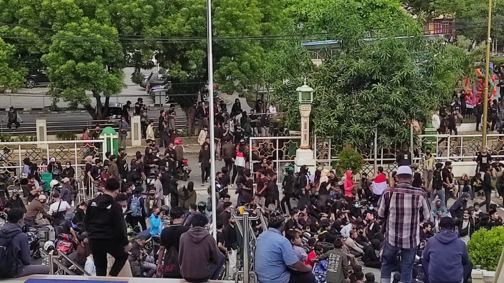 “Jangan (merusak) melakukan fasilitas umum. Jaga kekompakan kita pulang sore dan pulihkan tenaga besok kita lanjut demo lagi,” ujar Koordinator Lapangan aksi Demo.