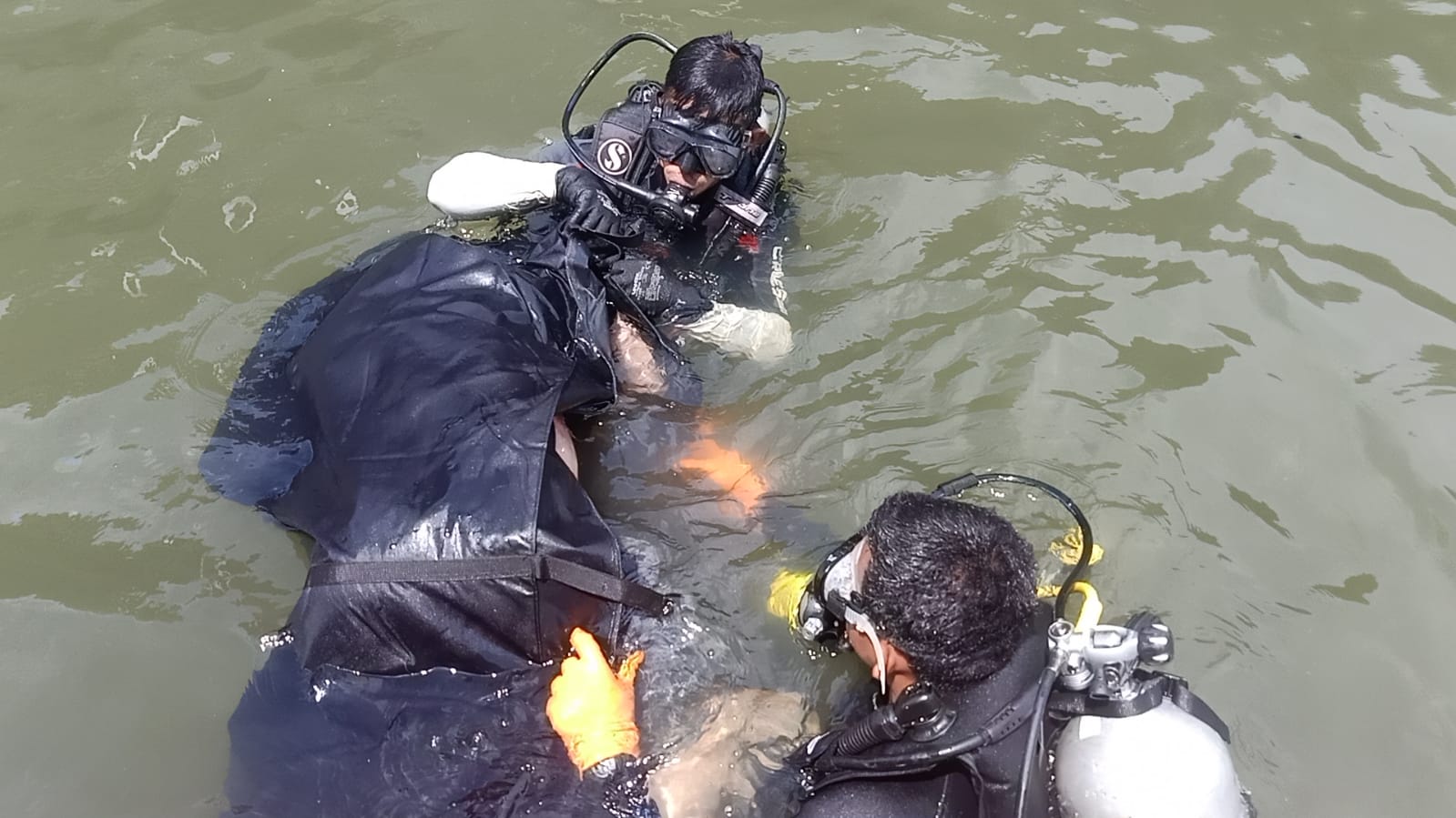 ABK Kapal Tugboat Blue Dragon 12 di Evakuasi dari Kedalaman 6 Meter di Teluk Balikpapan