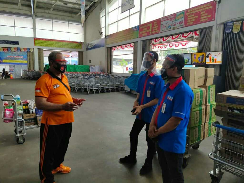 Aipda M. Sofyan yang menyambangi Pusat Indogrosir menemui para Karyawan yang bertugas melayani Warga Masyarakat yang datang berbelanja di tempat tersebut. Kepada para Karyawan Indogrosir Aipda M. Sofyan selaku Bhabinkamtibmas menyampaikan imbauan dan penekanan agar Protokol Kesehatan di lingkungan Indogrosir benar-benar diterapkan, mengingat Indogrosir merupakan Pusat Perbelanjaan yang besar dan setiap hari warga masyarakat berdatangan untuk melakukan aktifitas perbelanjaan.