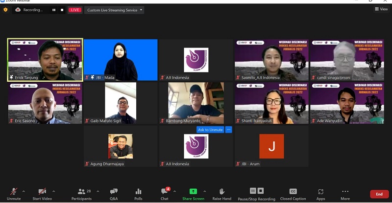 JAKARTA, Inibalikpapan.com – Aliansi Jurnalis Independen (AJI) Indonesia meluncurkan Indeks Keselamatan Jurnalis (IKJ) 2022 pada Rabu (19/10/2022) yang di gelar secara daring.