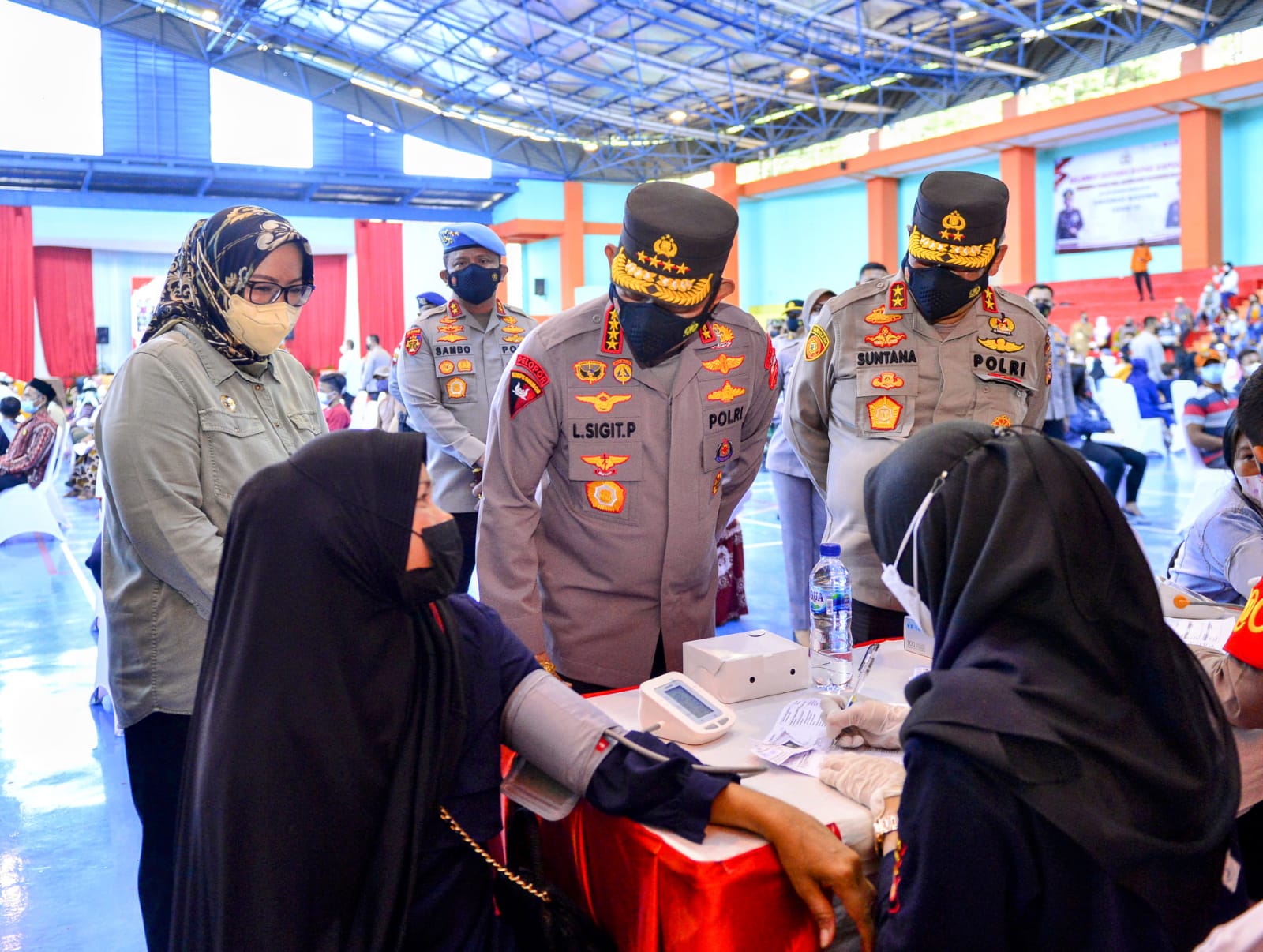 Tak lupa, Sigit menyampaikan apresiasi kepada seluruh jajaran TNI-Polri, tenaga kesehatan, Pemda, Forkopimda, vaksinator, relawan dan unsur masyarakat lainnya yang terus berusaha melakukan akselerasi vaksinasi meskipun di hari libur seperti saat ini.