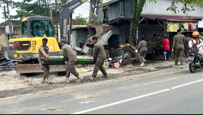 Penertiban dilakukan terhadap bangunan semi permanen yang berdiri di atas fasilitas umum di depan akses masuk Perumahan BDI, RT 24, Kelurahan Sungai Nangka, Kecamatan Balikpapan Selatan. Bangunan tersebut diketahui melanggar Garis Sempadan Bangunan (GSB) sejauh 15 meter dan menutup akses jalan warga.