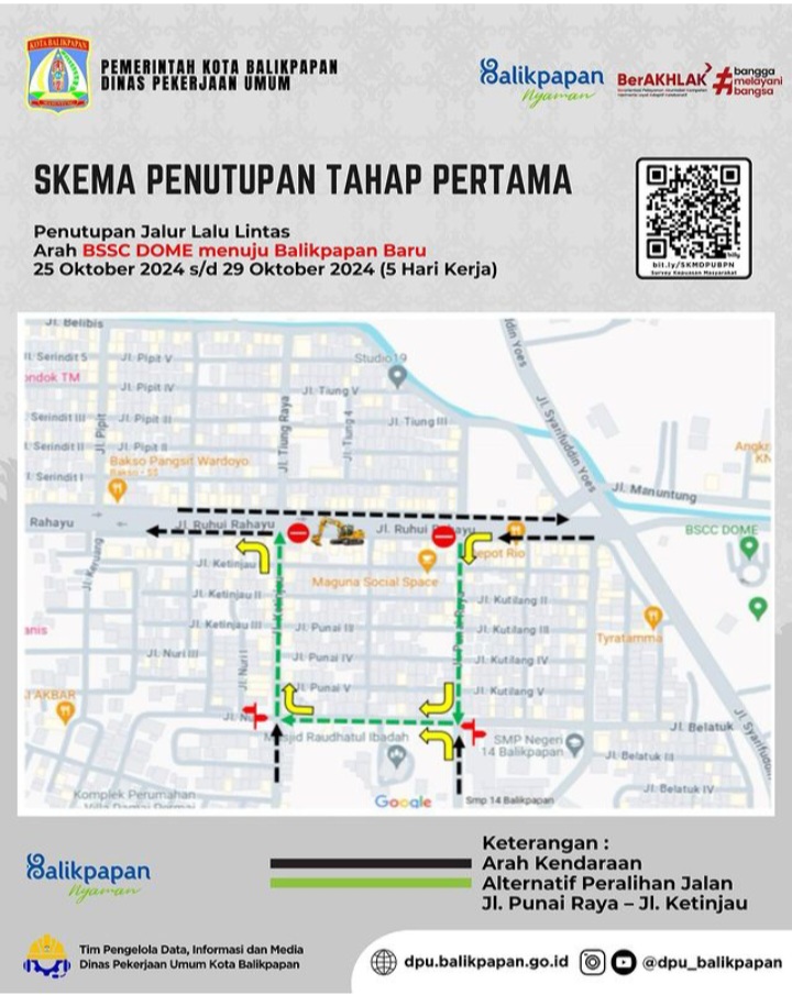 Tahap Pertama, penutupan jalan lalu lintas arah Balikpapan Baru menuju Dome mulai 25 Oktober 2024 sampai dengan 29 Oktober 2024.