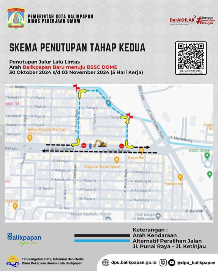 Tahap Kedua, penutupan jalan lalu lintas arah Dome menuju Balikpapan Baru mulai 30 Oktober 2024 sampai 3 November 2024.