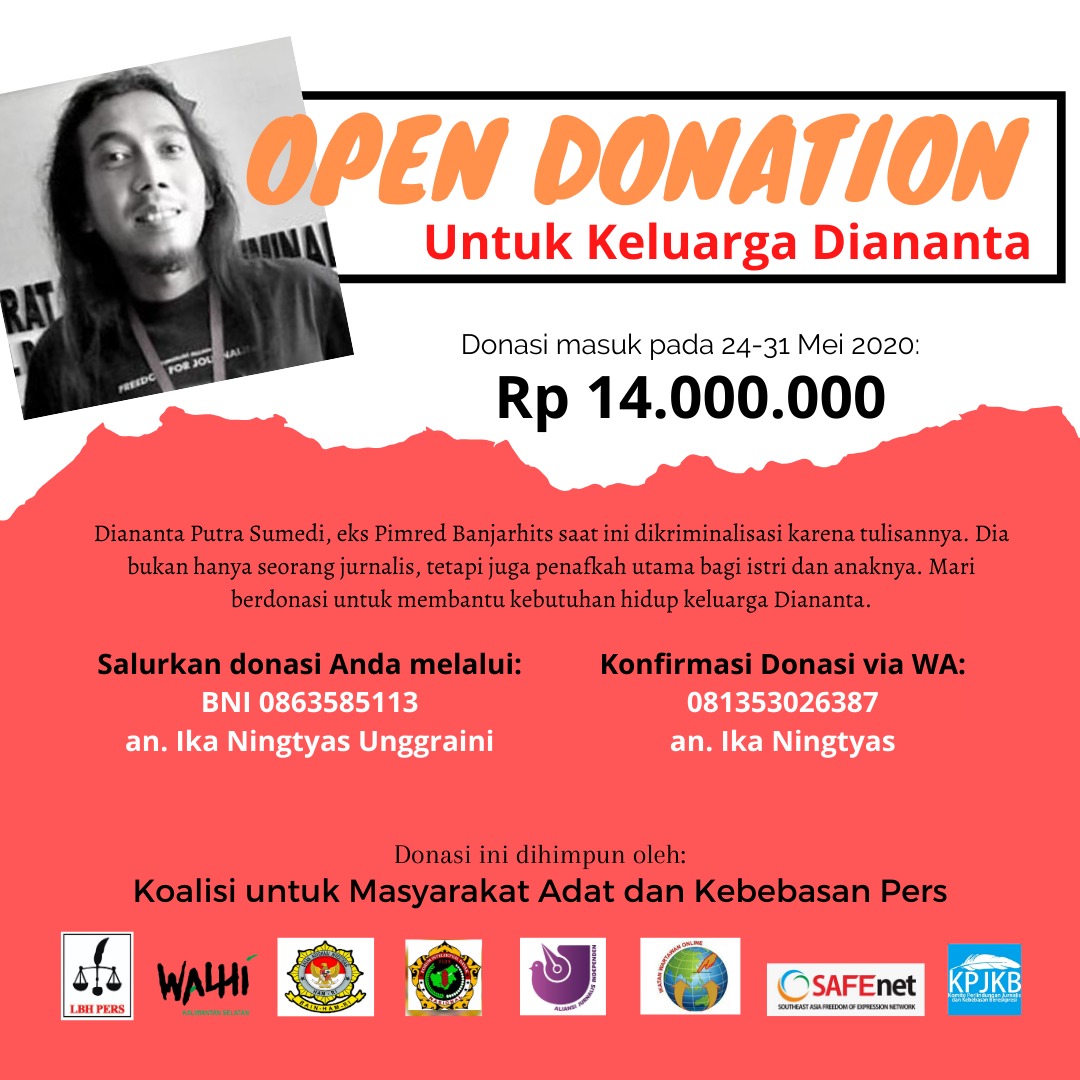 Donasi digagas oleh Tim Logistik Koalisi untuk Masyarakat Adat dan Kebebasan Pers yang dipimpin Ika Ningtyas, yang merupakan sahabat istri Diananta sekaligus anggota Aliansi Jurnalis Independen (AJI) Jember.