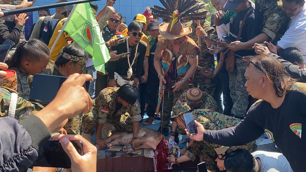 “Dengan pemotongan babi simbol rasa sakit hari warga Indonesia khususnya warga Kaltim, dimana Kaltim sebagai provinsi terpilih sebagai IKN,” tambahnya.