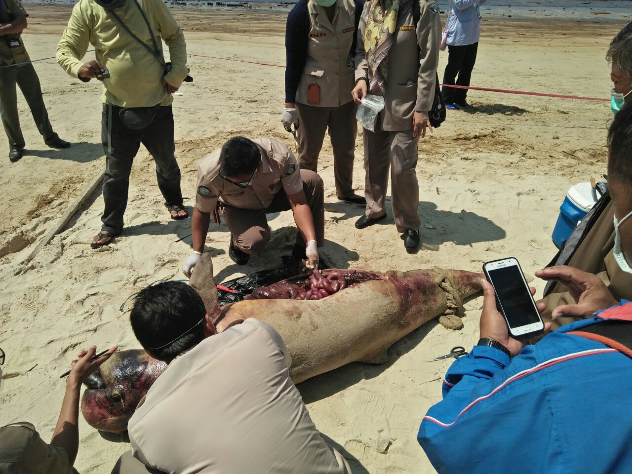 Dua mamalia pesut ditemukan terdampar dan mati. Warga sekitar pesisir terancam sesak nafas karena bau minyak yang menyengat dalam beberapa hari terakhir.
