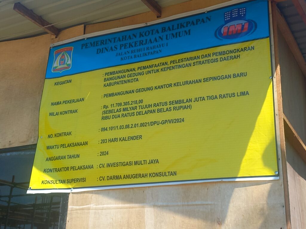 Pembangunan Kantor Kelurahan Sepinggan Baru dialokasikan sekitar Rp 11,7 Miliar dari APBD Kota dengan kontraktor pelaksana CV Investigasi Multi Jaya dan konsultan supervisi CV Darma Anugerah Konsultan. Waktu pengerjaan sekitar 203 hari kalender.