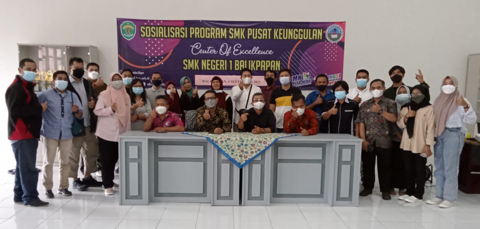 Hadir dalam acara tersebut, Kepala Sekolah SMKN 1 Mujadi Spd Mpd, Satuan Tugas Covid 19 SMKN 1 Totok Subuh Subiato, Waka Kurikulum SMKN 1 Sigit Purwanto,Wakil Managemen, Mutu Nurjaman,Wakil Kepala Bidang Sarana Prasarana (Guru Senior Listrik) SMKN 1 Balikpapan Pardiya, Kepala Bengkel Listrik Serlin dan Guru SMKN 1 Muhidin, Waka Ketenagaan Ekawati.