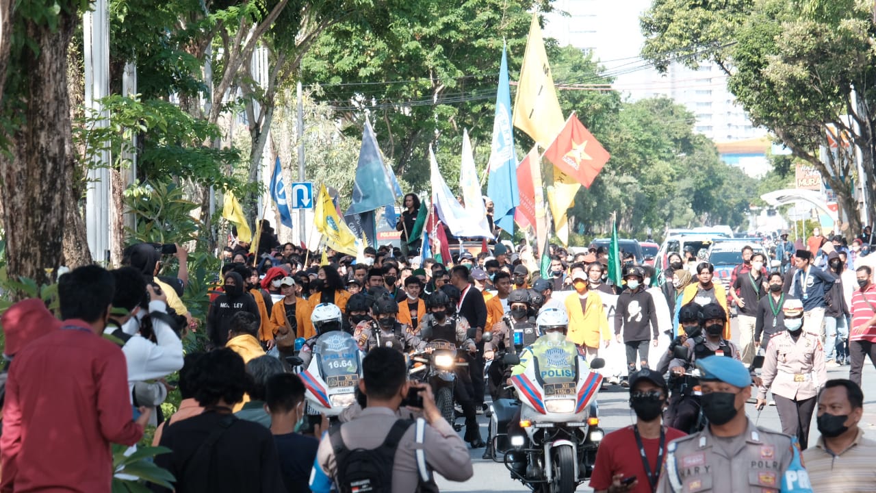 Sejumlah poin tuntutan dibawa para mahasiswa ini. Tuntutannya antara lain menolak perpanjangan masa jabatan presiden dan penundaan Pemilu 2024. Kemudian, menolak dan membatalkan kenaikan BBM serta PPN 11 persen.