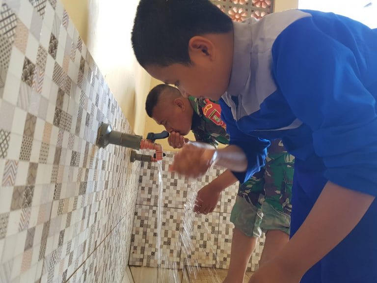 MARTAPURA, Inibalikpapan.com – Beginilah cara anggota TNI yang beugas di Lokasi TMMD Kodim 1006/Martapura desa Biih bersama tokoh agama mengajari anak-anak Desa Biih tata cara berwudhu.