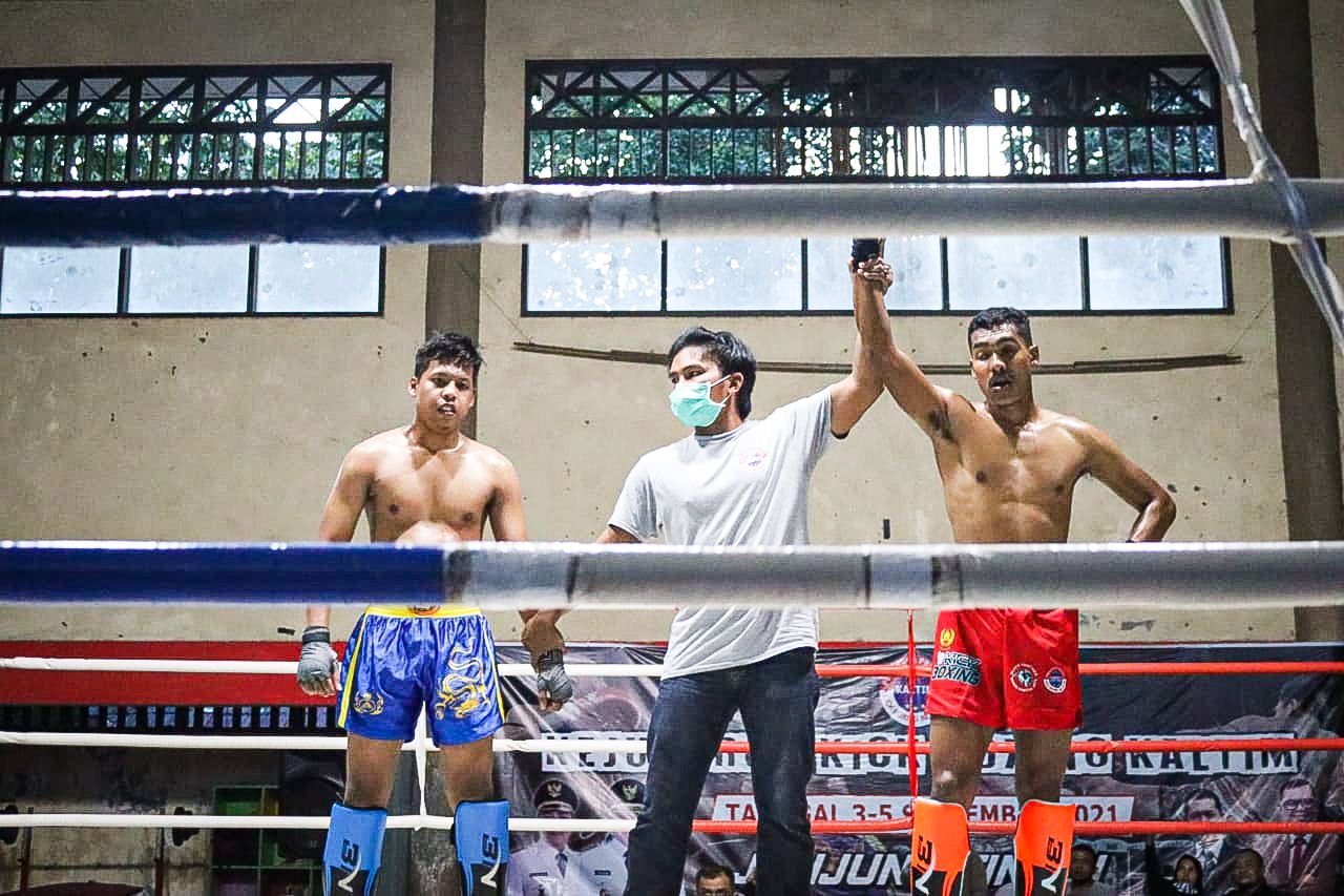 SAMARINDA, Inibalikpapan.com – Anggota Satuan Brimob Polda Kaltim Bripda Januarius Kristian De Sales juara Kick Boxing Kelas 63 kg dalam Kejuaran Provinsi (Kejurprov) Kaltim 2021.
