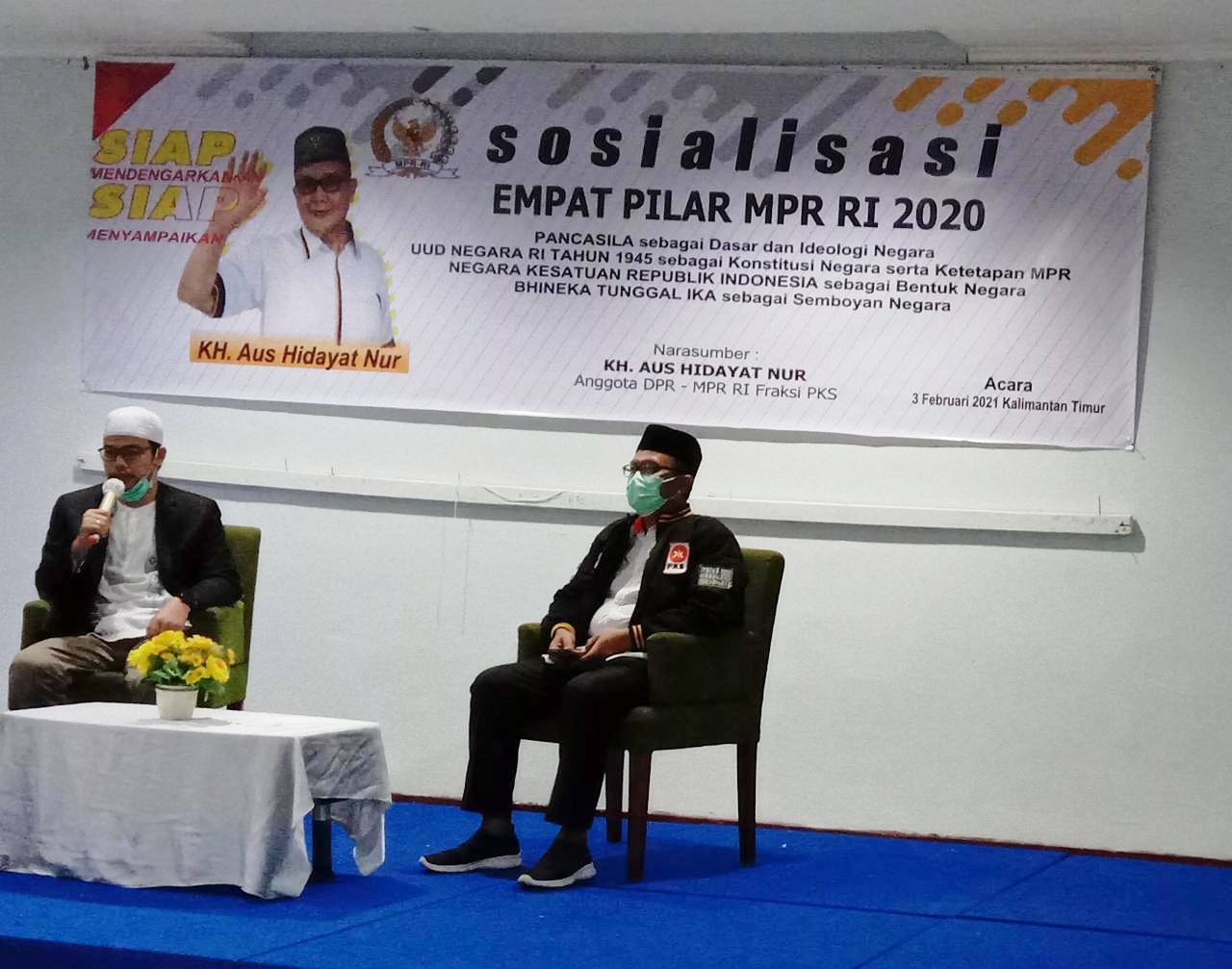 BALIKPAPAN, Inibalikpapan.com — Anggota DPR RI yang juga anggota MPR RI dari Partai Keadilan Sejahtera (PKS) Dapil Kalimantan Timur (KALTIM) KH Aus Hidayat menggelar sosialisasi empat pilar kepada masyarakat dari 6 Kecamatan di Kota Balikpapan yang dilaksanakan di Hotel HER, (8/2/2021).