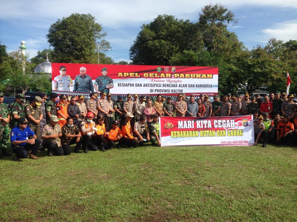 Apel Pasukan tersebut, dipimpin langsung Pangdam VI Mulawarman Mayjend TNI Subiyanto dan Kapolda Kaltim Irjen Pol Muktiono. Usai apel, langsung digelar simulasi pemadaman karhutla yang melibatkan personil gabungan.