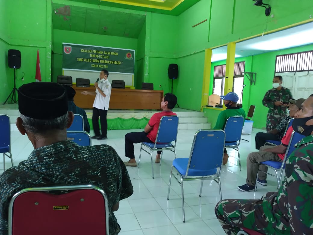 Dandim 0903/Tsr Kolonel Inf Sapta Marwindu Ibraly, mengatakan tujuan kegiatan sosialisasi pertanian ini memberikan arahan sosialisasi penyuluhan tentang pertanian dan mengajak kepada masyarakat agar bersama sama meningkatkan hasil produksi pertanian guna menunjang tercapainya ketahanan pangan dan mengajak Masyarakat dan kelompok tani untuk mengelola dan memanfaatkan lahan tidur yang ada agar dapat meningkatkan perekonomian masyarakat dan TNI siap membantu bekerjasama dengan masyarakat.