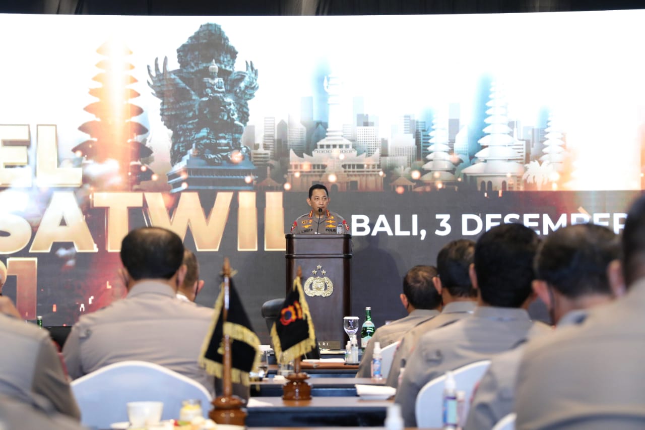 BALI – Kapolri Jenderal Listyo Sigit Prabowo menyampaikan beberapa hal penting dalam Apel Kasatwil Polri. Dihadapan personel, Ia meminta agar capaian pengendalian pandemi Covid-19 yang sudah sangat baik terus dipertahankan. Atas hal ini, Kapolri mengapresiasi seluruh kerja keras personel Polri dalam penganganan Covid-19 selama ini.