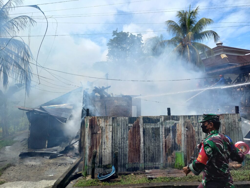 Api dengan cepat membesar membakar bangunan yang terbuat semi permanen yang terdiri dari 1 unit rumah.