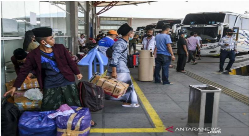Kepadatan pemudik terlihat di sejumlah titik keberangkatan maupun kedatangan masyarakat yang mudik lebaran.