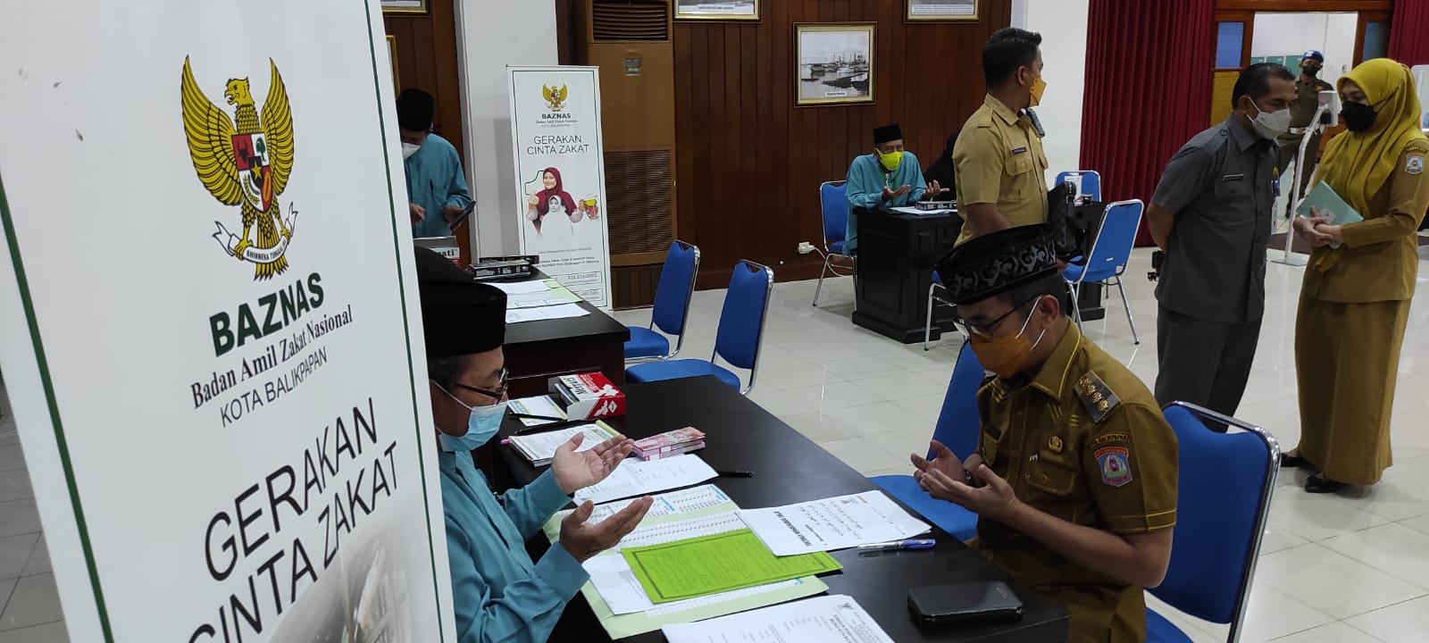 Dalam kegiatan ini, Wali Kota Balikpapan Rahmad Mas’ud, Pj Sekda Kota Balikpapan dan sejumlah Aparatur Sipil Negara (ASN) di lingkungan Pemerintah Kota Balikpapan membayar zakat fitra, infaq dan sodaqoh secara langsung kepada sejumlah petugas dari Baznas Balikpapan.