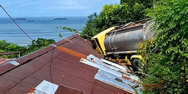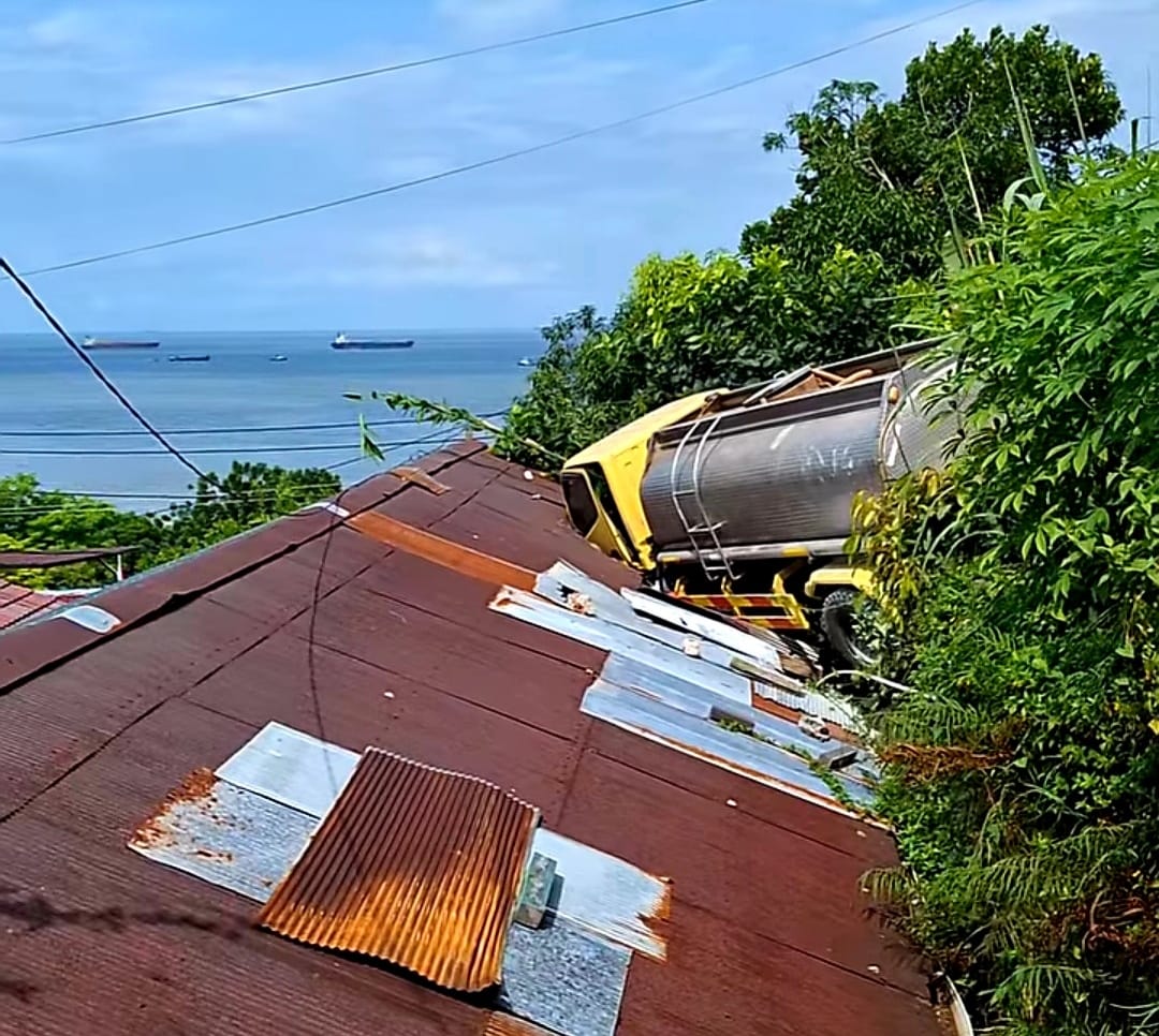 Astaga, Atap Rumah Warga di Pelayaran Balikpapan Tertimpa Truk Tangki
